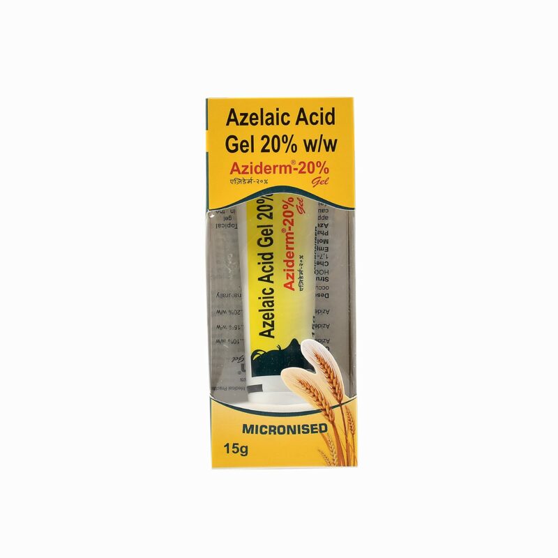 Aziderm 20% Gel is used in the treatment of acne (pimples). It effectively relieves symptoms such as lumps, redness, and swelling associated with different forms of acne. It works by killing acne-causing bacteria. Aziderm 20% Gel is for external use only. You should always use it exactly as prescribed. Both the affected area and your hands should be clean and dry before application. Use this medicine regularly to get the most benefit from it. Do not use more than you need as it will not clear your condition faster and some side effects may be increased. If your condition goes on for longer than four weeks or gets worse at any time, let your doctor know. You can help this medication work better by keeping the affected areas clean.